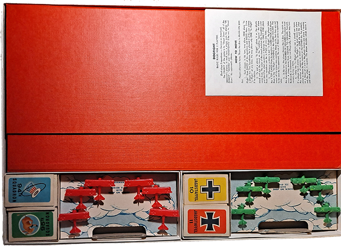 Opening the box, you can see that the pieces are very detailed and the box was well constructed. The game consists of small model biplanes, cards, a gameboard, and other various pieces.