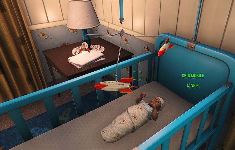 The main character has a wife and baby son. Because of his military service, his family is eligible for admittance to the Vault, which is an underground safe shelter in case of attack. This is the baby son.