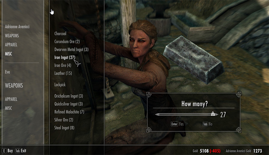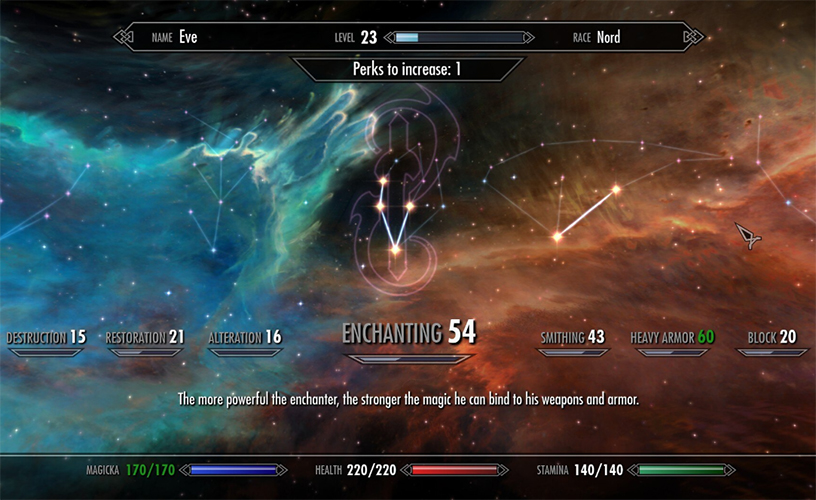 My favorite game is Skyrim. I love the way you can mold your characters features, such as sex, hair, eyes, and facial features. The way the game leads your character through steps of how to begin the game makes playing enjoyable from the start. What I would like to concentrate on are the three main skills that help your character to advance quickly in the game. These skills are Alchemy, Smithing, and Enchanting.
