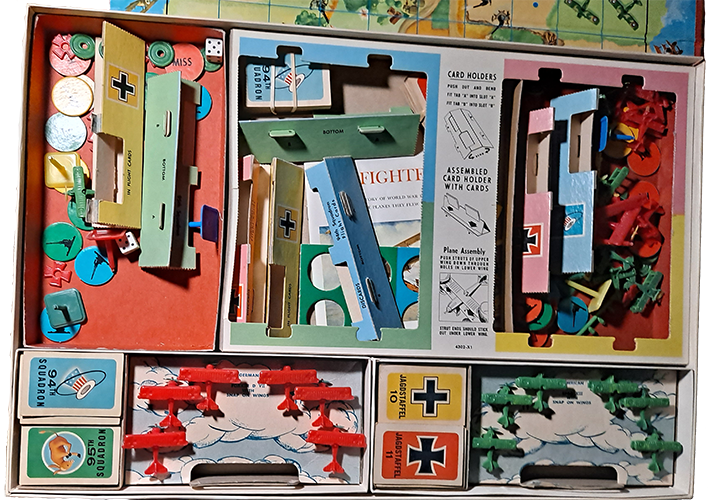 Opening the box, you can see that the pieces are very detailed and the box was well constructed. The game consists of small model biplanes, cards, a gameboard, and other various pieces.